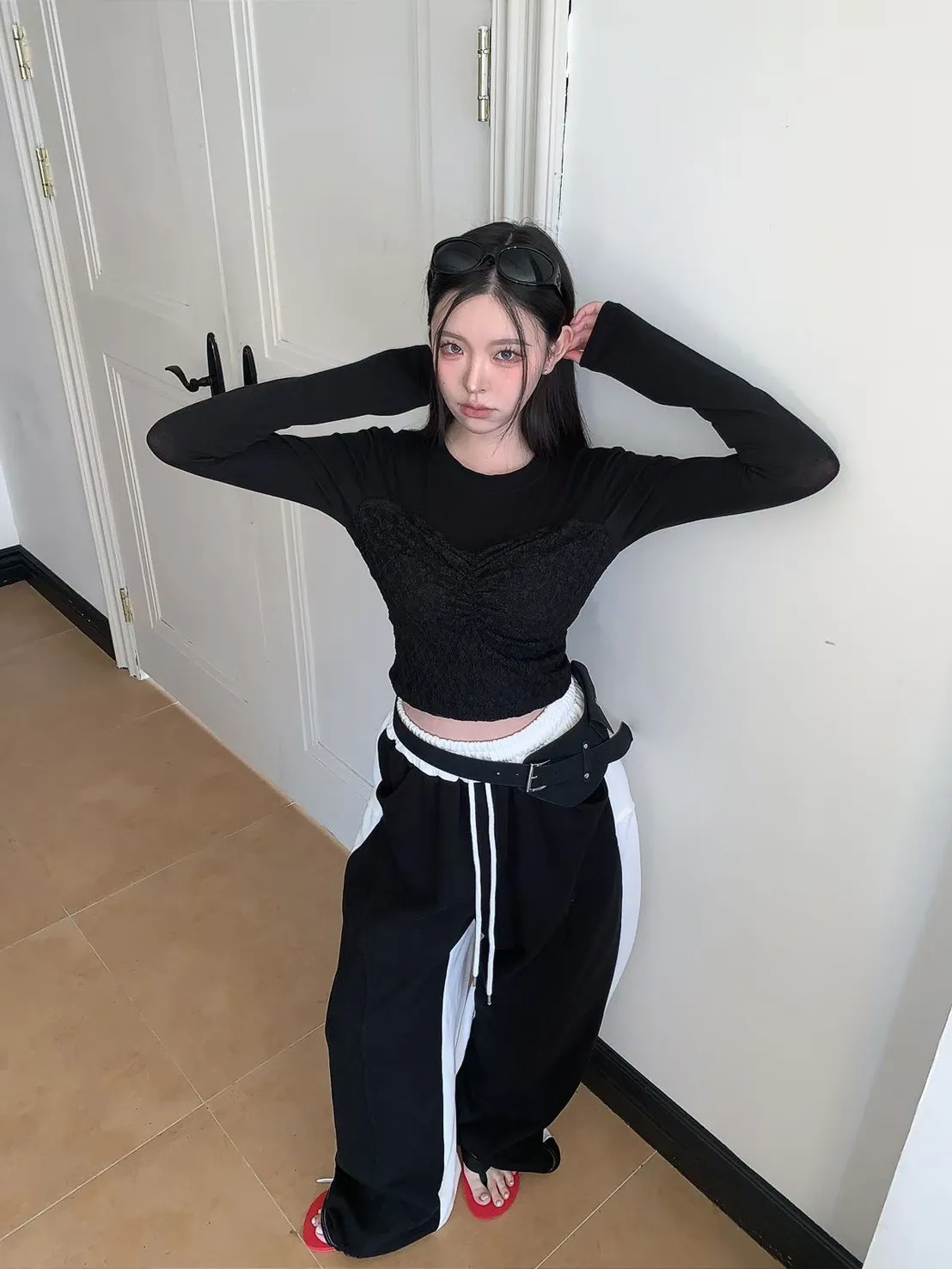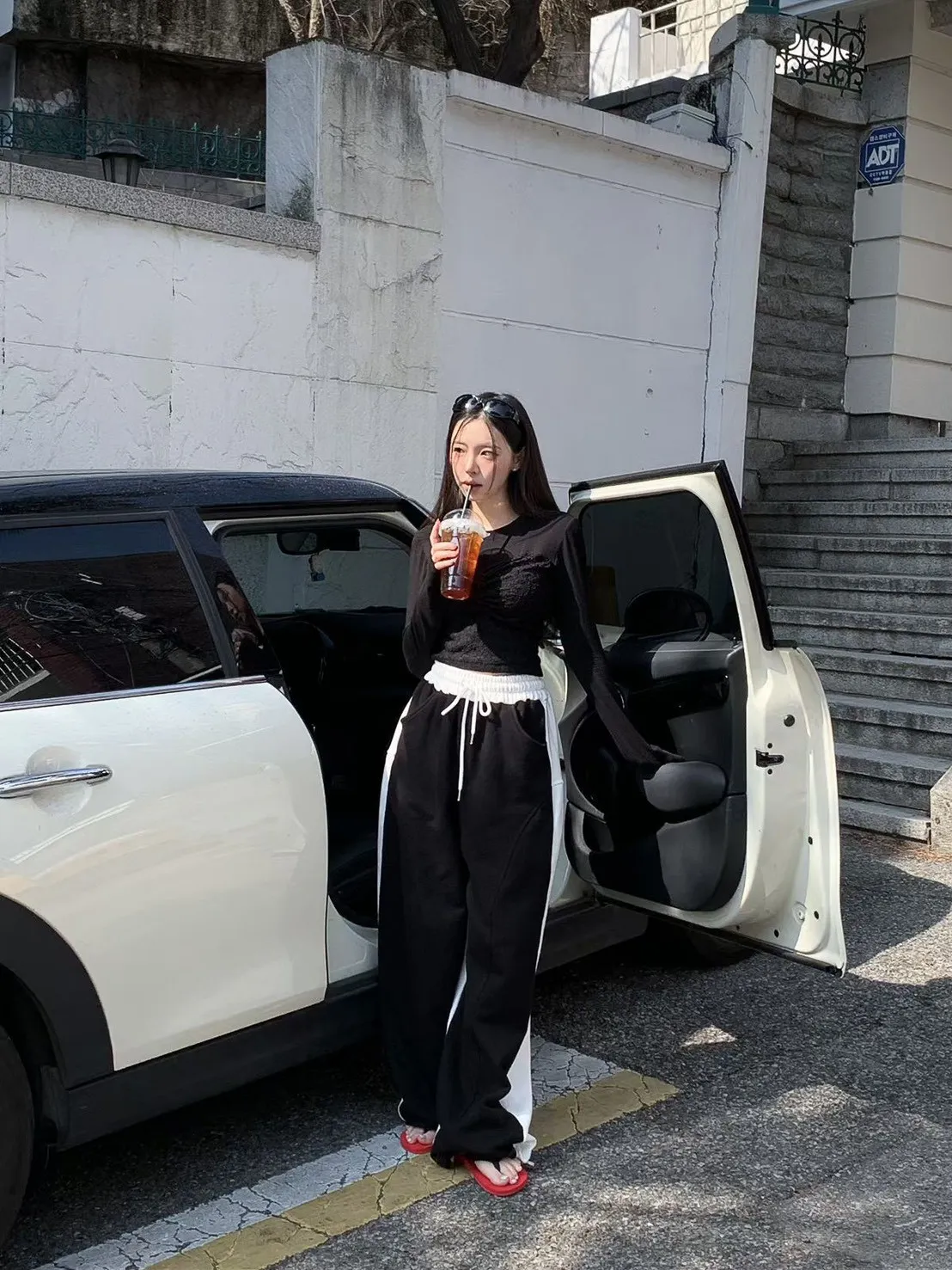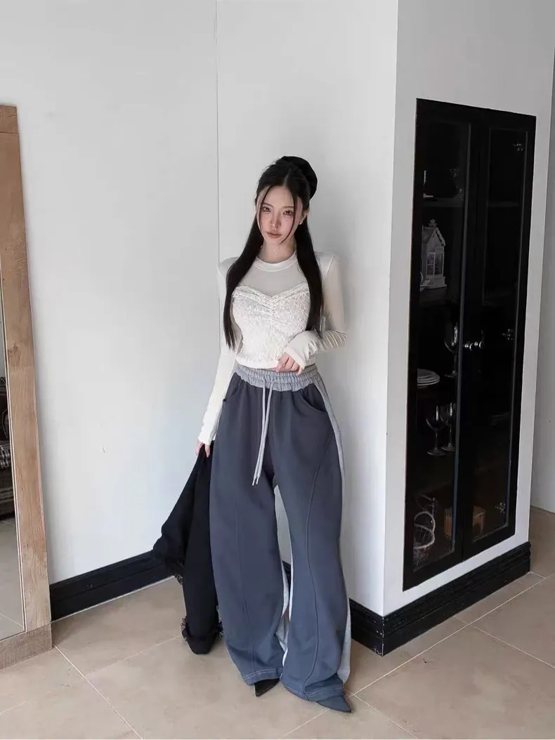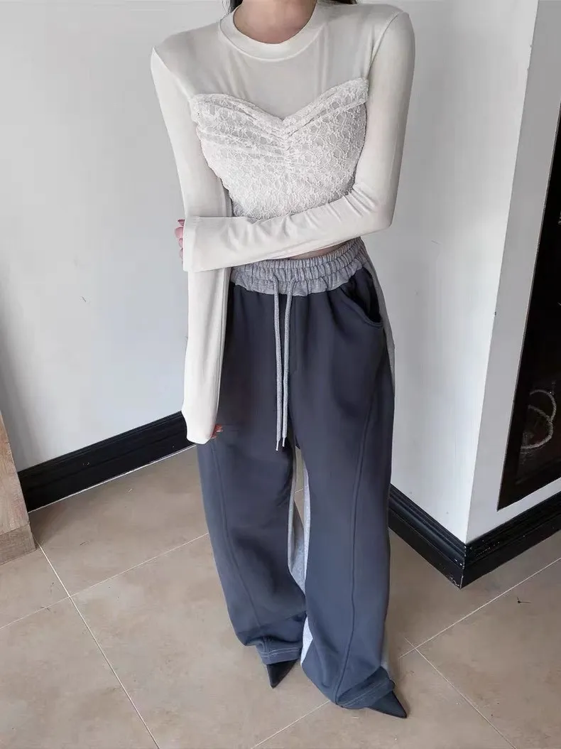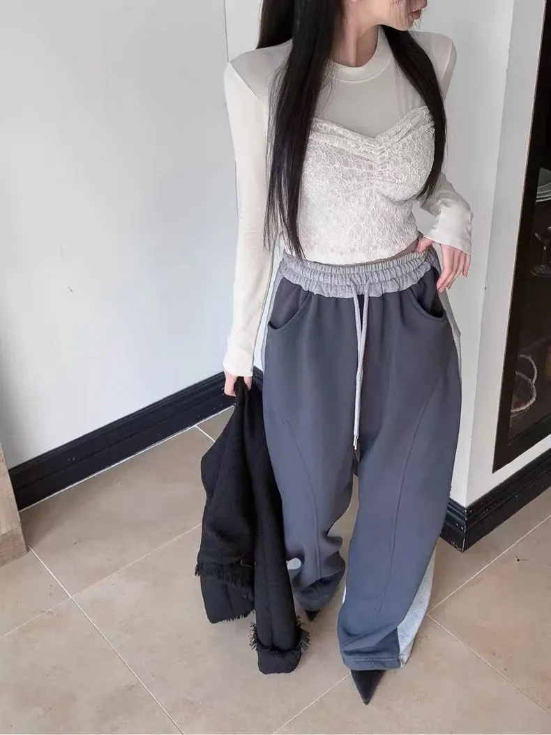 顯瘦配色彎刀棉褲